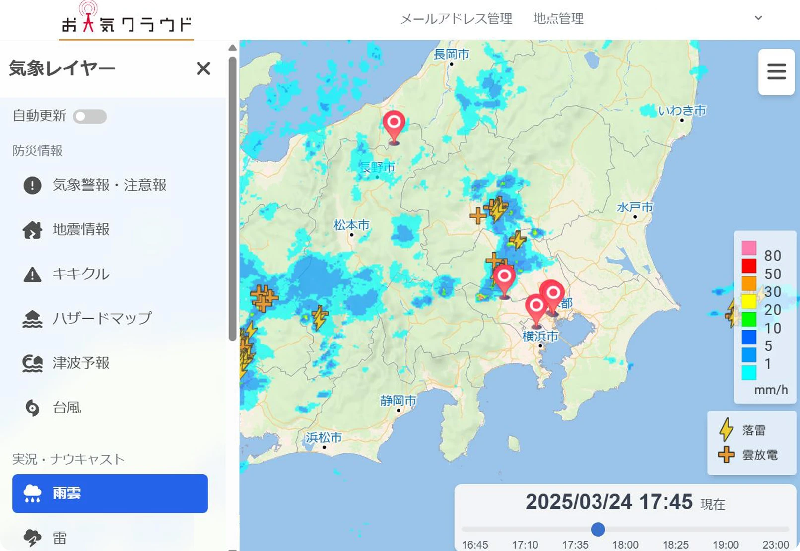 お天気クラウドで